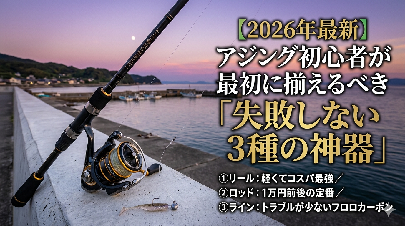 アジング道具 【2026年最新】アジング初心者が最初に揃えるべき「失敗しない三種の神器」 「アジング始めてみたいけど、道具が多すぎて何を買えばいいかわからない…」 そんな声、ほんとうによく聞きます。 アジングって、釣りの中でも「繊細な釣り」として有名なんですよね。 だから「ラインは?ロッドの硬さは?ジグヘッドの重さ... 2026.03.14 アジング道具釣り