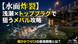メバリング 【水面炸裂】浅瀬×トッププラグで狙うメバル攻略|根がかりゼロの最強戦略とは? 夜の堤防。足元に広がる浅瀬を前に、こんなふうに感じたことはありませんか。 「あそこ、根がかりしそうだな……やめておくか」 わかります。せっかくのルアーをロストする恐怖、リーダーを結び直す時間のロス、そしてだんだん萎えていくテンション。根... 2026.03.20 メバリング